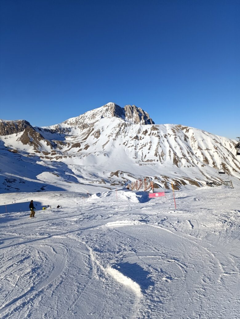 Sveglia all’alba, dal paesino ai piedi del Gran Sasso, Paganica, il meteo si legge facilmente affacciandosi dalla finestra: C’è il sole! Che fai, non sali?Balzo giù dal letto, calzamaglia, maglia termica, pile, zaino pronto, casco, maschera, guanti e due bei panini con la fettina panata, che a mezzogiorno diventano surgelati. E si va. Paganica, guarda, …